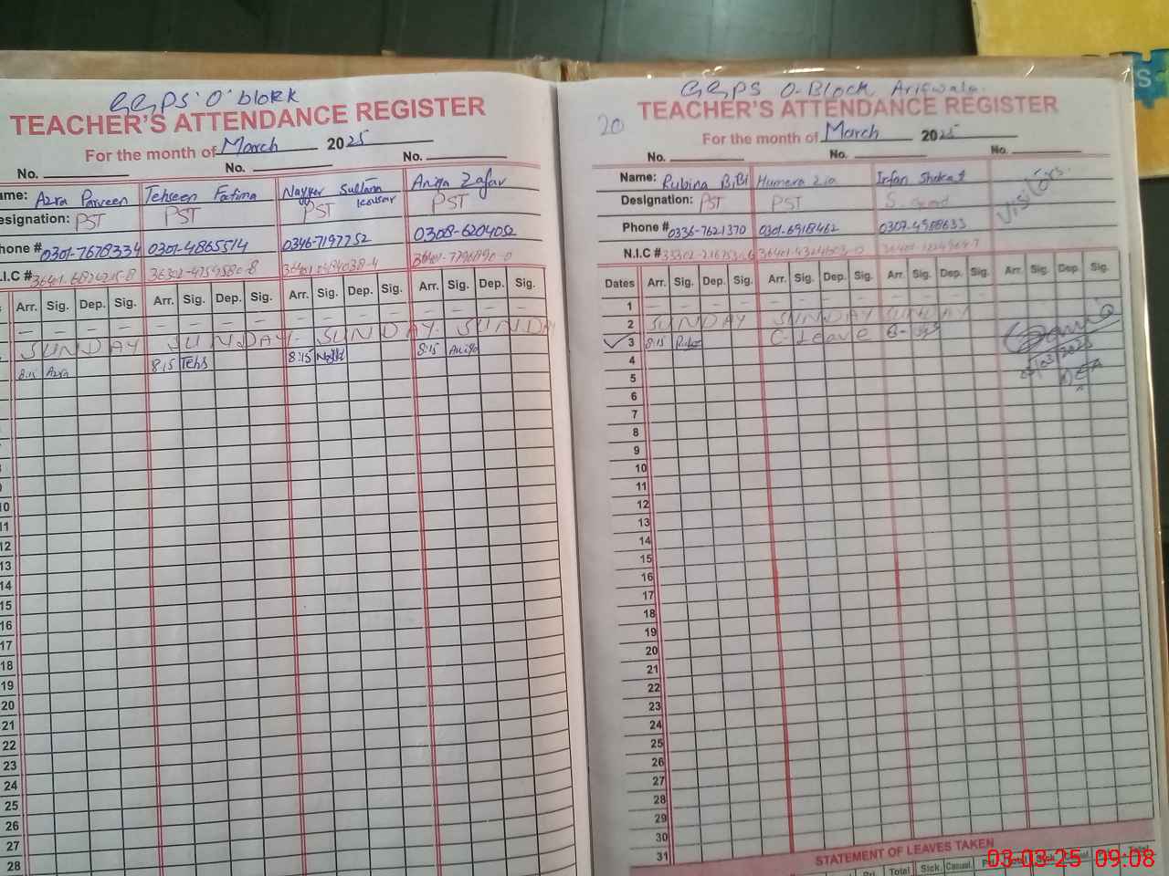 | Name: AZ**** PA**** Designation: (School Headmaster's/Headmistress's) PST Phone/Cell Number: 03**** |