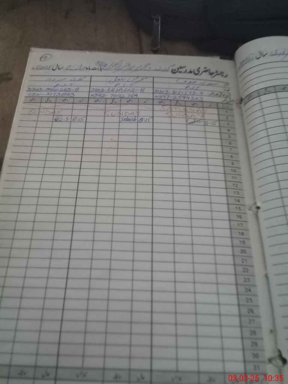 | CNIC | Full Name | Designation | R/C | Absence During Last Calender Month |