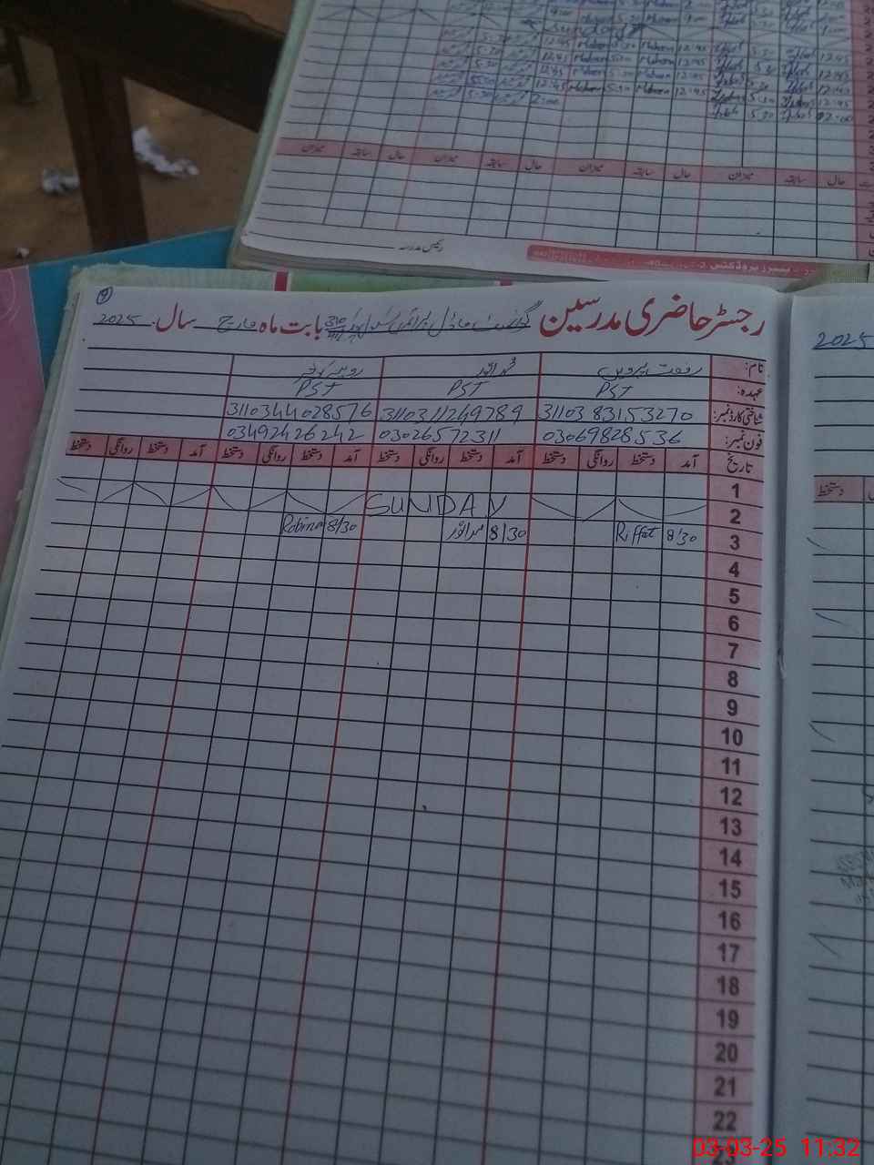 | Name: Ri**** Pe**** Designation: (School Headmaster's/Headmistress's) PST/PTC/JV Phone/Cell Number: 03**** |