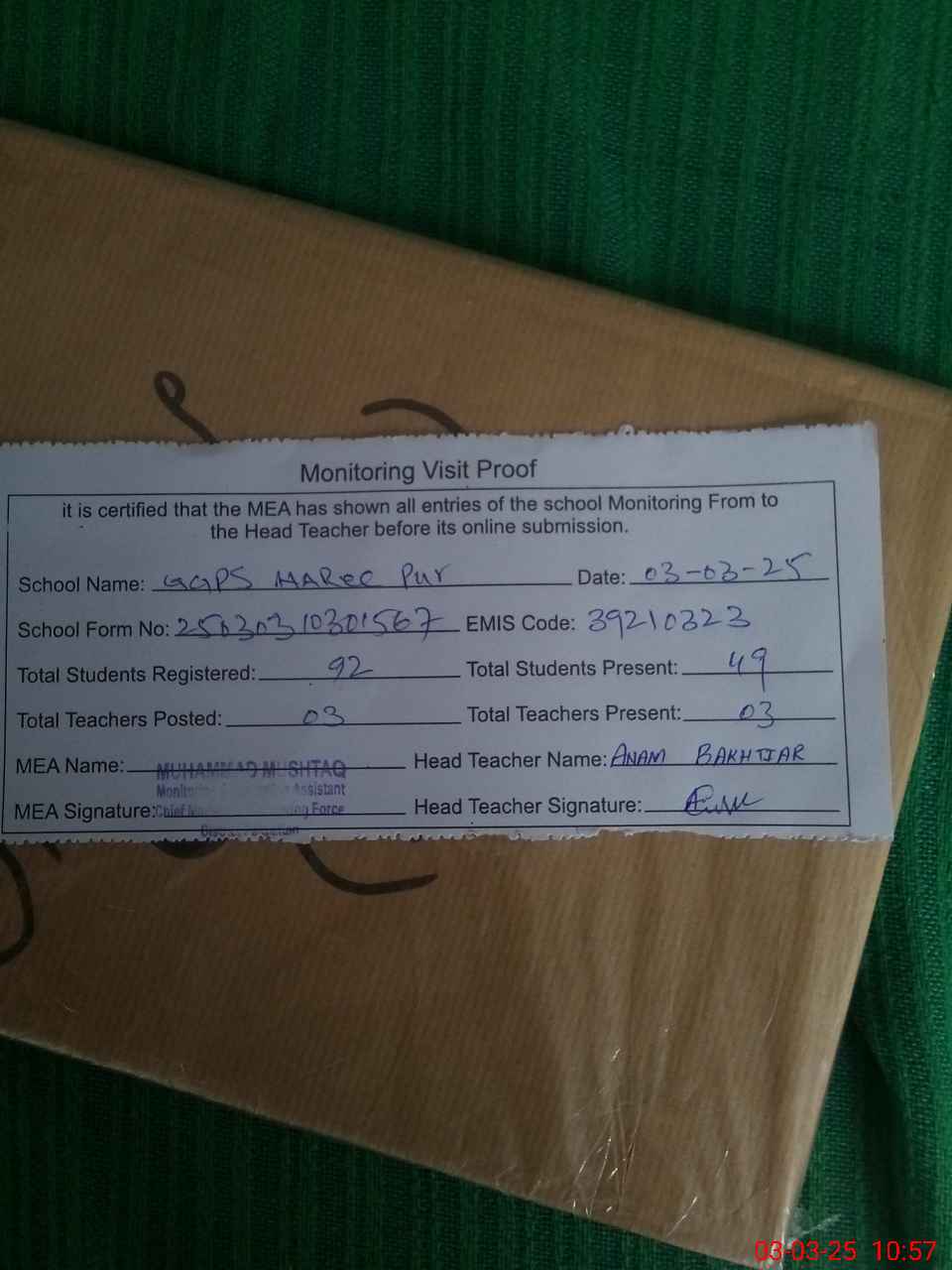 | EMIS Code: 39210323 | Name of School: GGPS HAREE PUR | |||