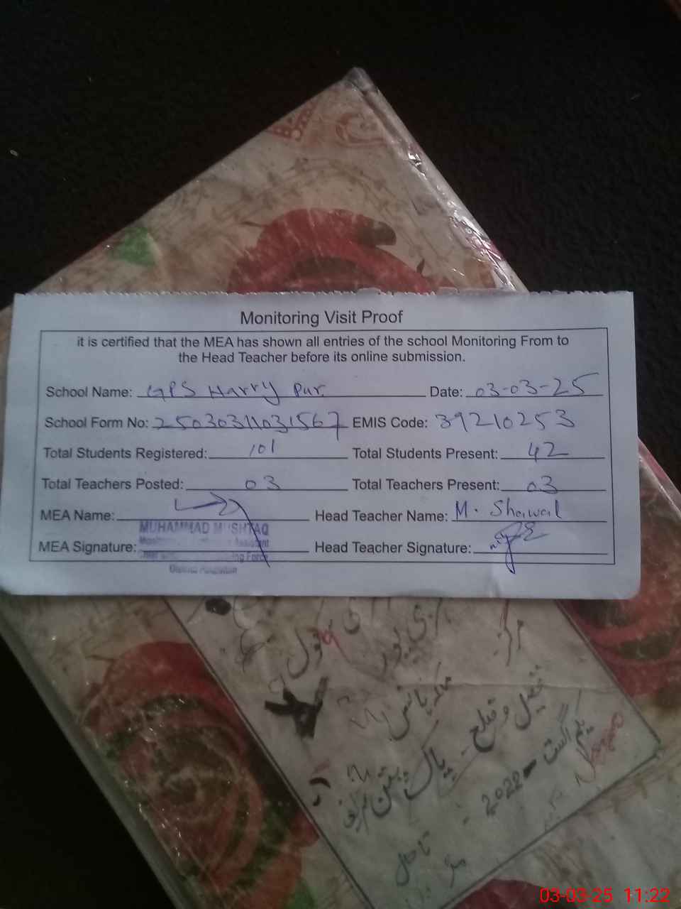 | EMIS Code: 39210253 | Name of School: GPS HARRY PUR | |||