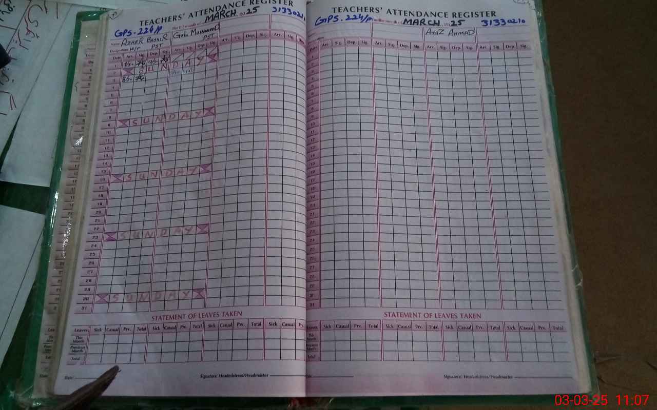 | Name: AZ**** BA**** Designation: (School Headmaster's/Headmistress's) PST/PTC/JV Phone/Cell Number: 03**** |