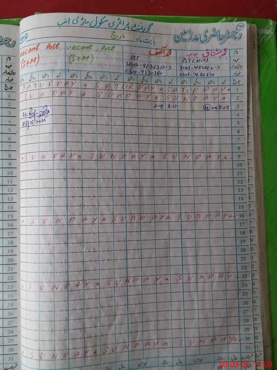| Name: MU**** Mu**** Designation: (School Headmaster's/Headmistress's) PST Phone/Cell Number: 03**** |