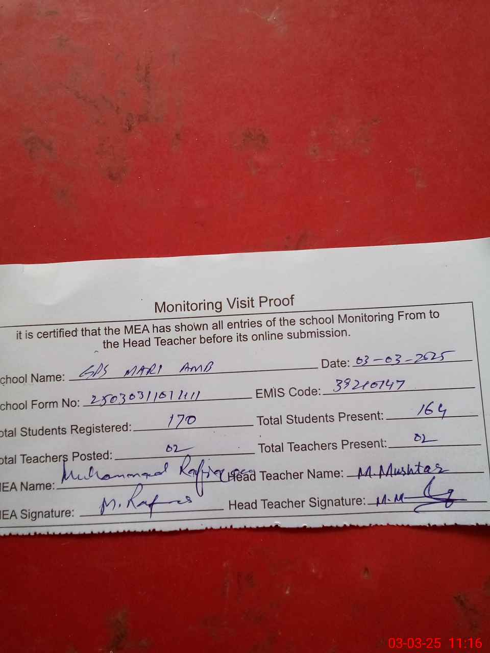 | EMIS Code: 39210147 | Name of School: GPS MARI ANB | |||