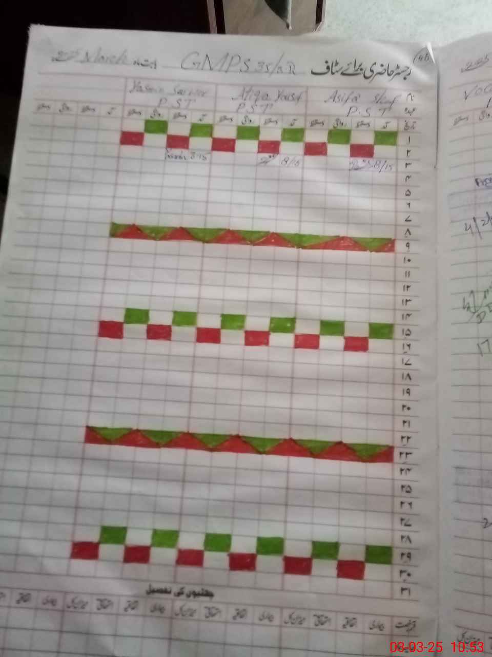 | Leave | Duty | Absent | Maternity | Medical | Ex- Pak |