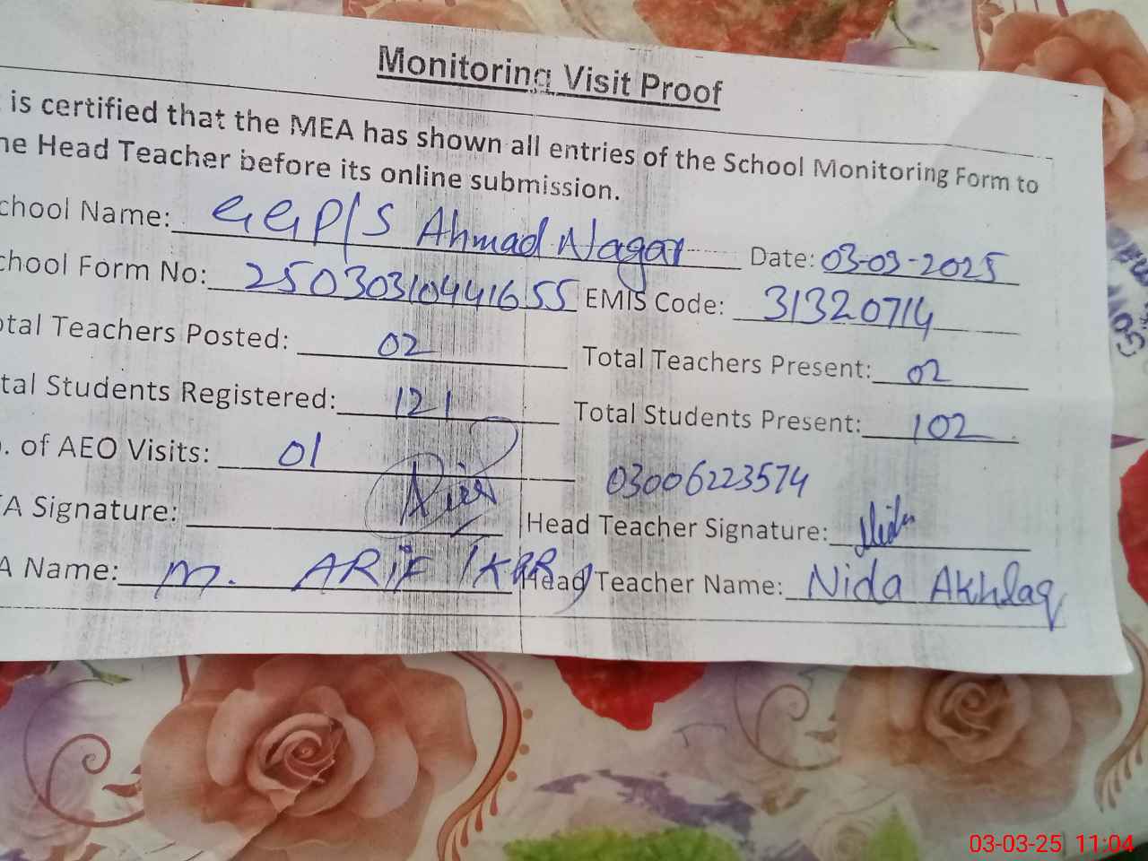 | Name: NI**** AK**** Designation: (School Headmaster's/Headmistress's) PST Phone/Cell Number: 03**** |