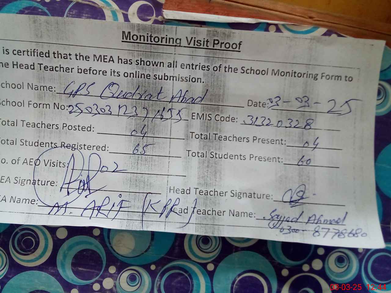 | EMIS Code: 31320328 | Name of School: GPS QUDRAT ABAD | |||