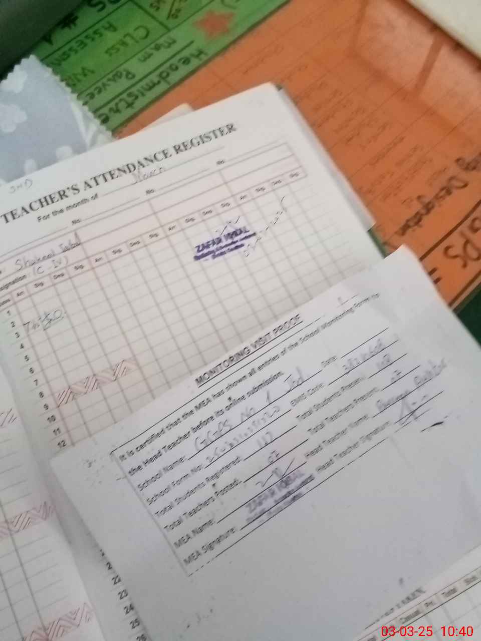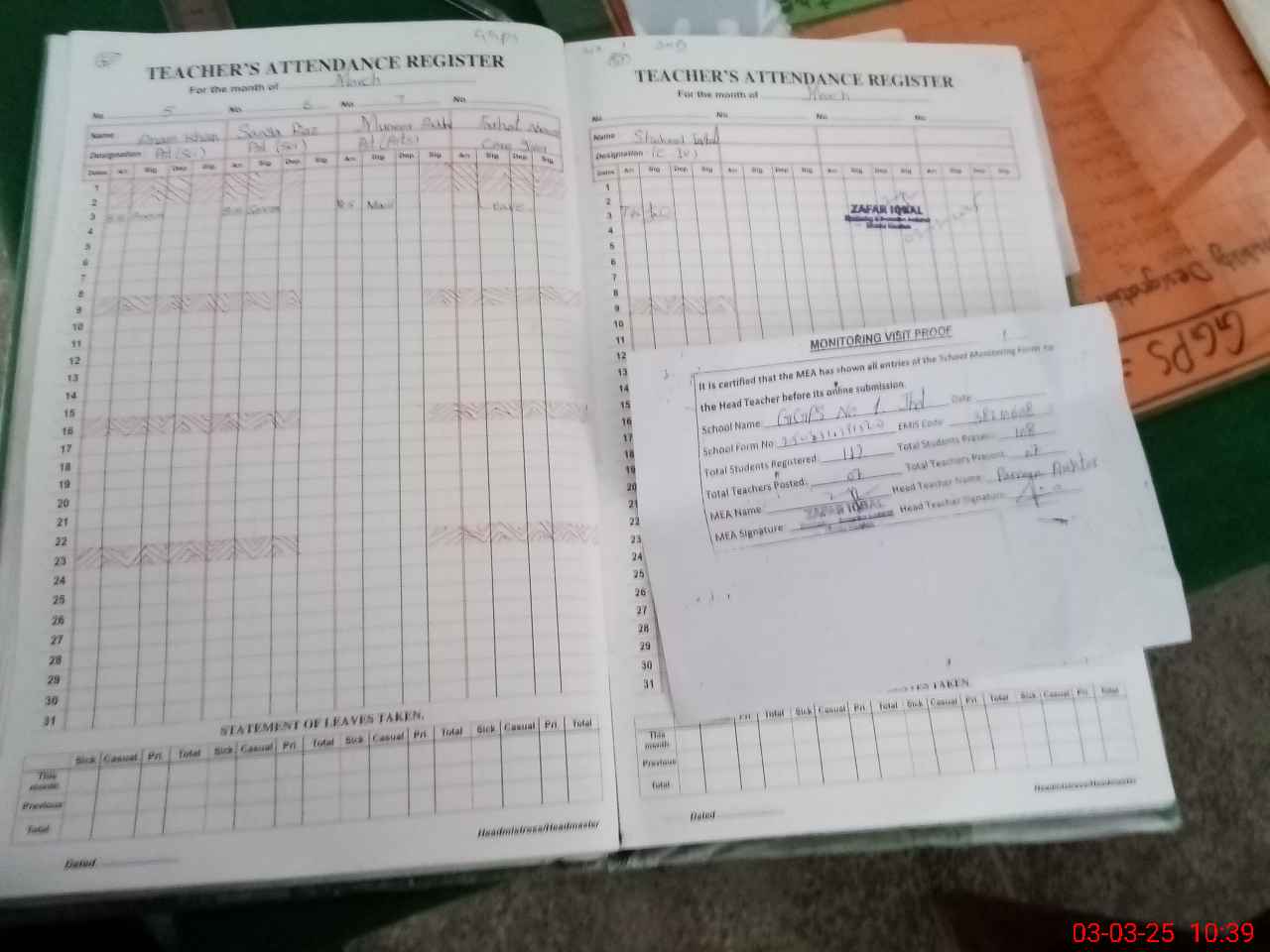 | Attendance Register | Head Teacher | MEA with School | Visit Proof |