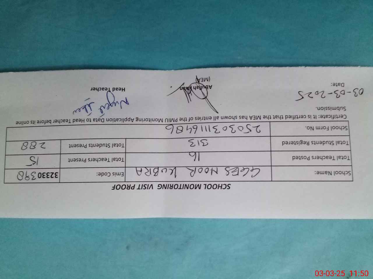 | EMIS Code: 32330398 | Name of School: GGES NOOR KUBRA | |||