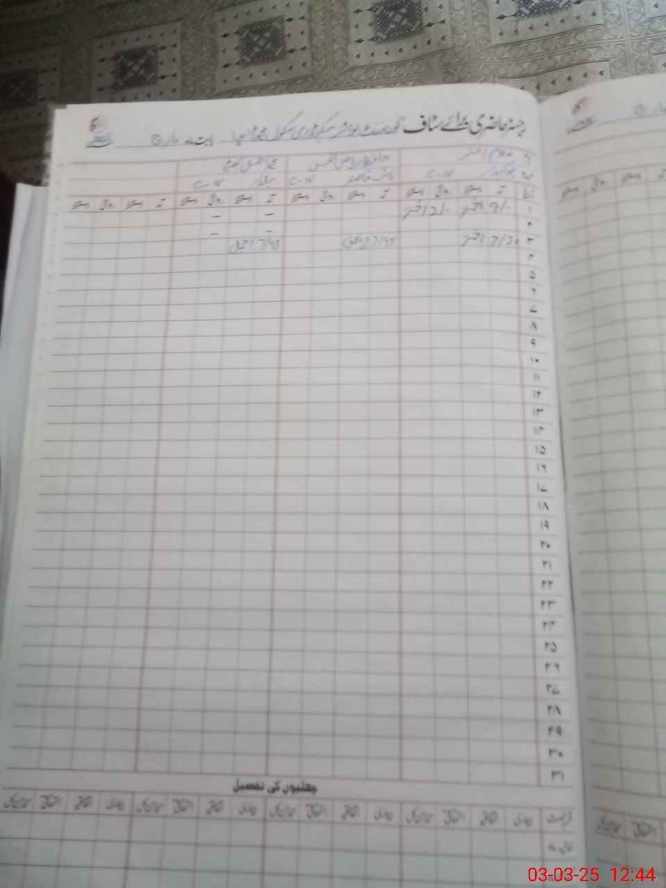 | CNIC | Full Name | Designation | R/C | Absence During Last Calender Month |
