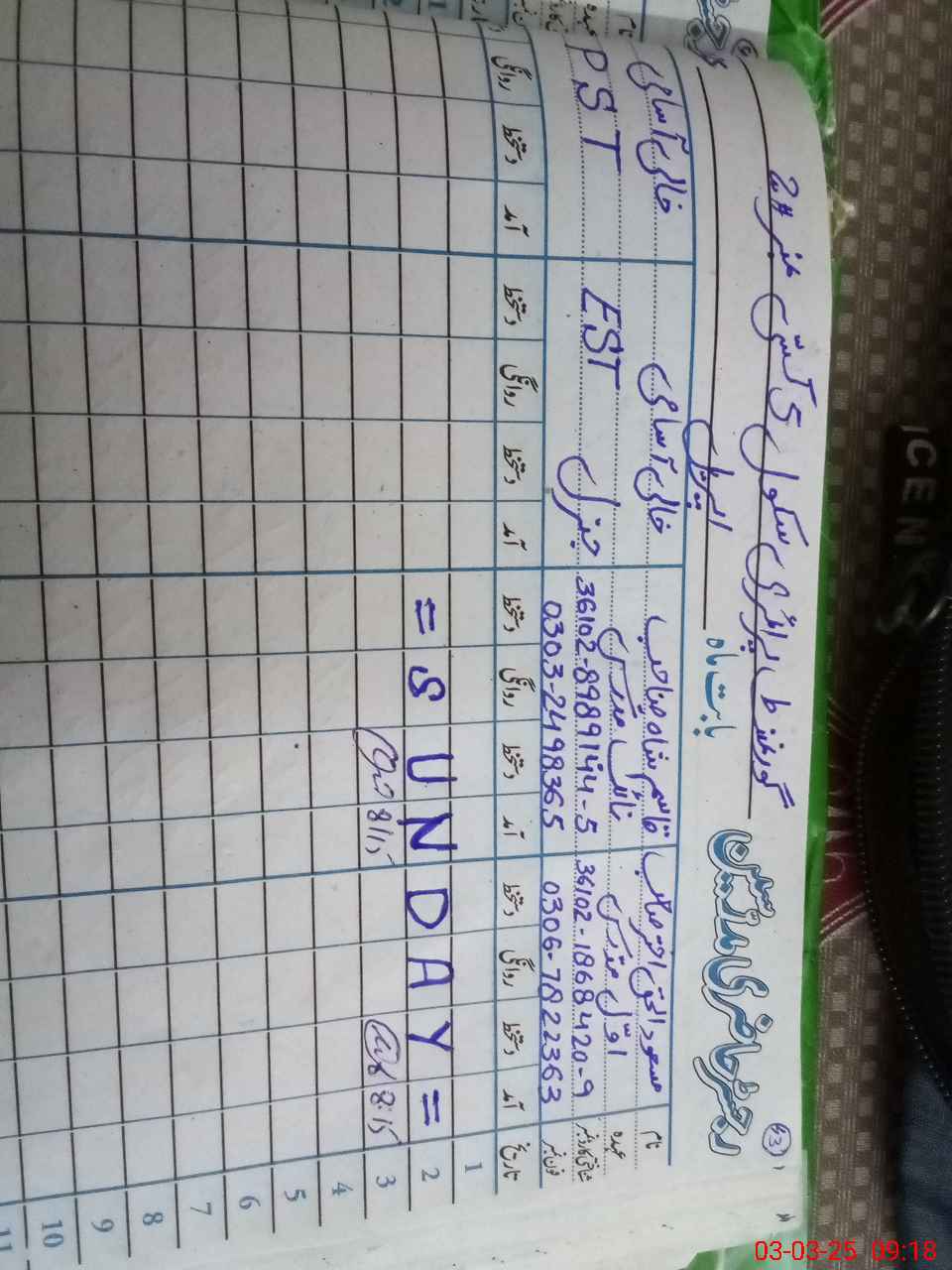 | Name: Ma**** UlHa**** Designation: (School Headmaster's/Headmistress's) PST Phone/Cell Number: 03**** |