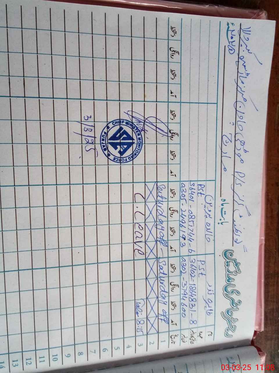 | Name: TA**** NA**** Designation: (School Headmaster's/Headmistress's) PST Phone/Cell Number: 03**** |