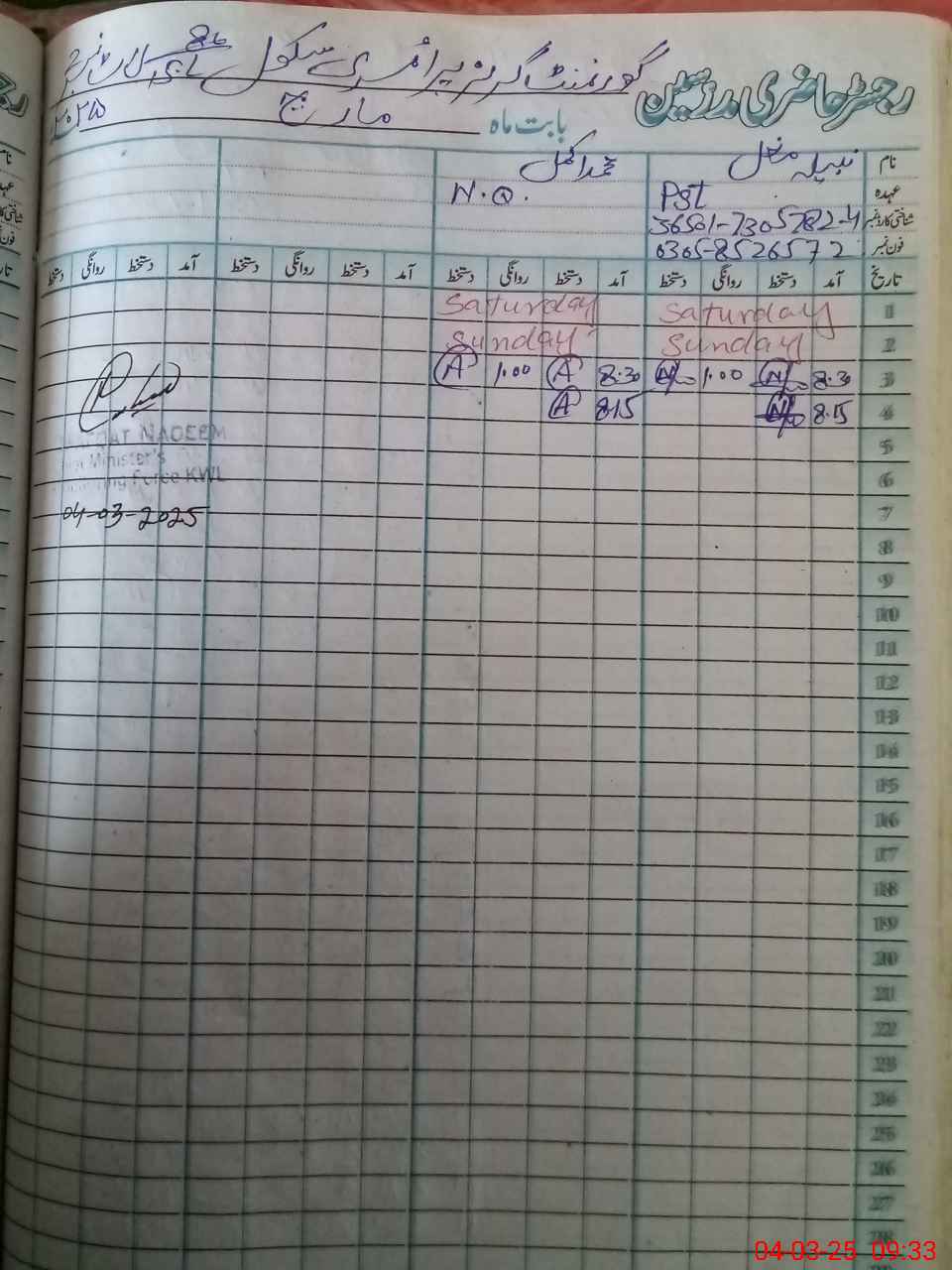| Name: NA**** MU**** Designation: (School Headmaster's/Headmistress's) PST Phone/Cell Number: 03**** |