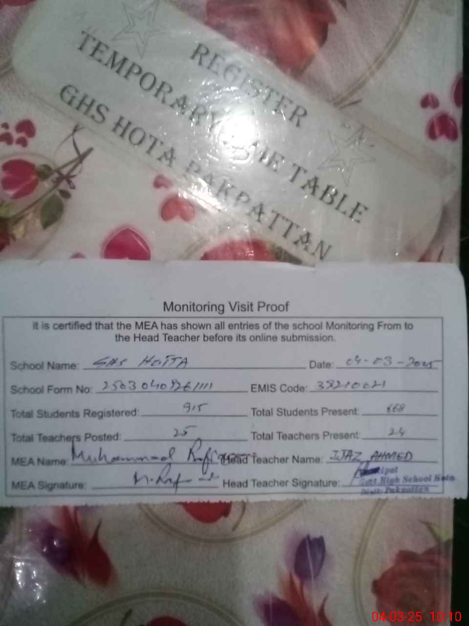 | EMIS Code: 39210021 | Name of School: GHS HOTTA | |||