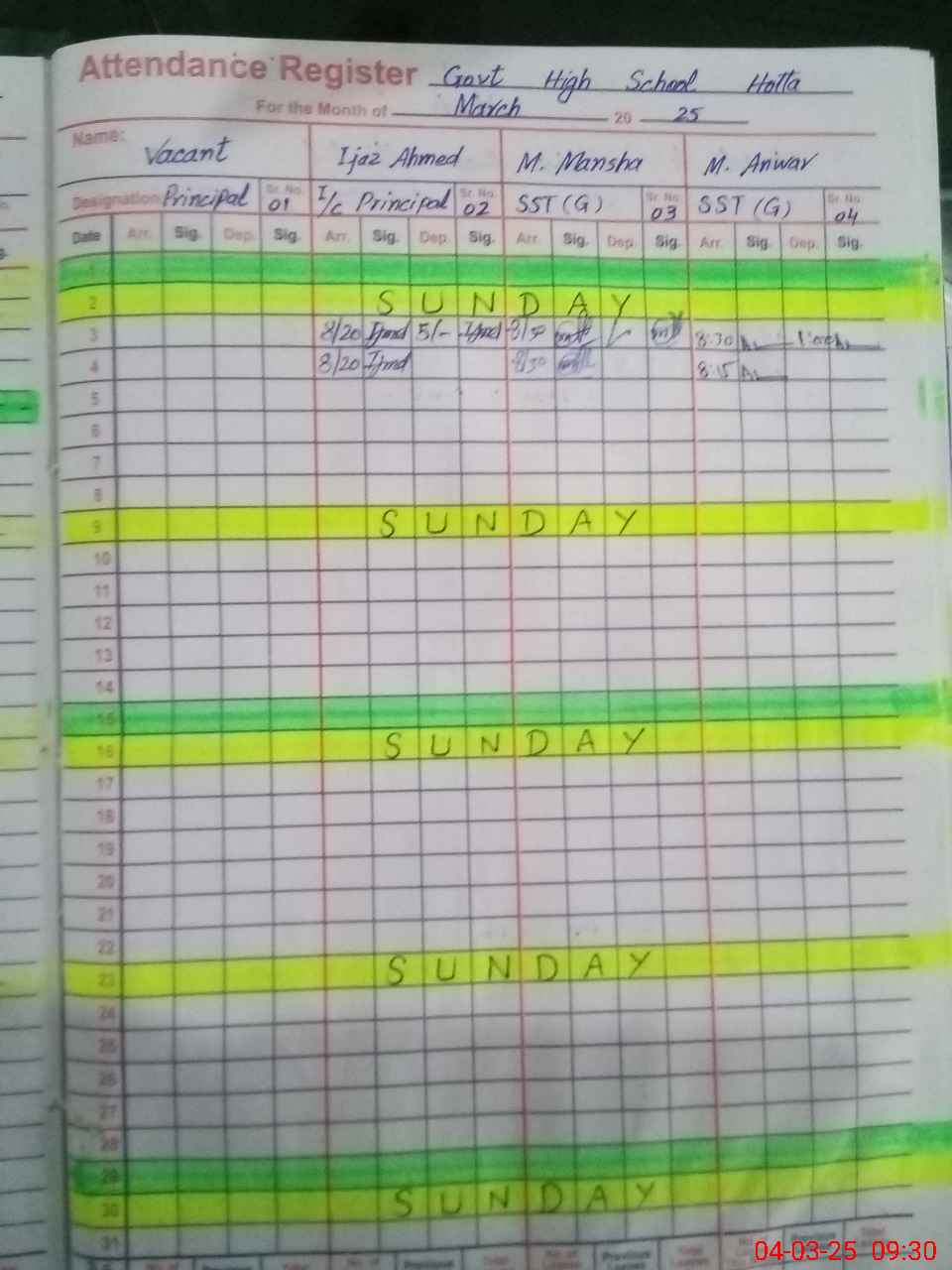 | Name: IJ**** AH**** Designation: (School Headmaster's/Headmistress's) SST SC (INCHARGE ) Phone/Cell Number: 03**** |