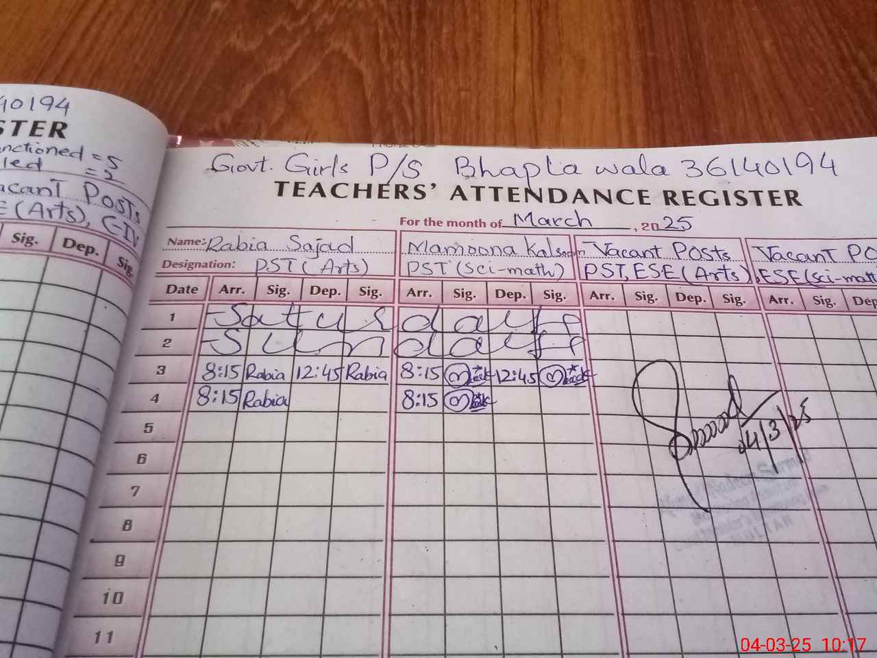 | Name: Ra**** Sa**** Designation: (School Headmaster's/Headmistress's) ESE (Art) Phone/Cell Number: 03**** |