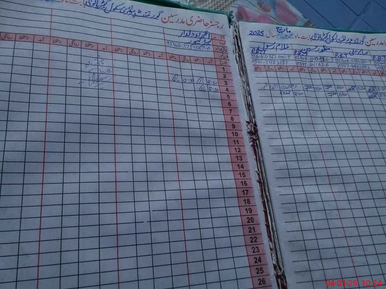 | Name: NA**** AK**** Designation: (School Headmaster's/Headmistress's) PST Phone/Cell Number: 03**** |
