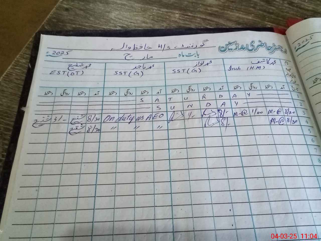 | Leave | Duty | Absent | Maternity | Medical | Ex- Pak |
