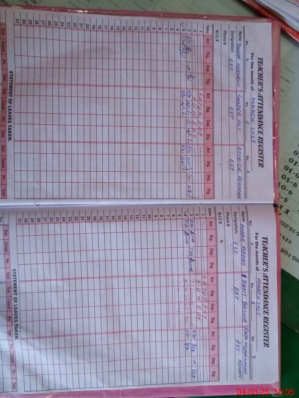 | Leave | Duty | Absent | Maternity | Medical | Ex- Pak |