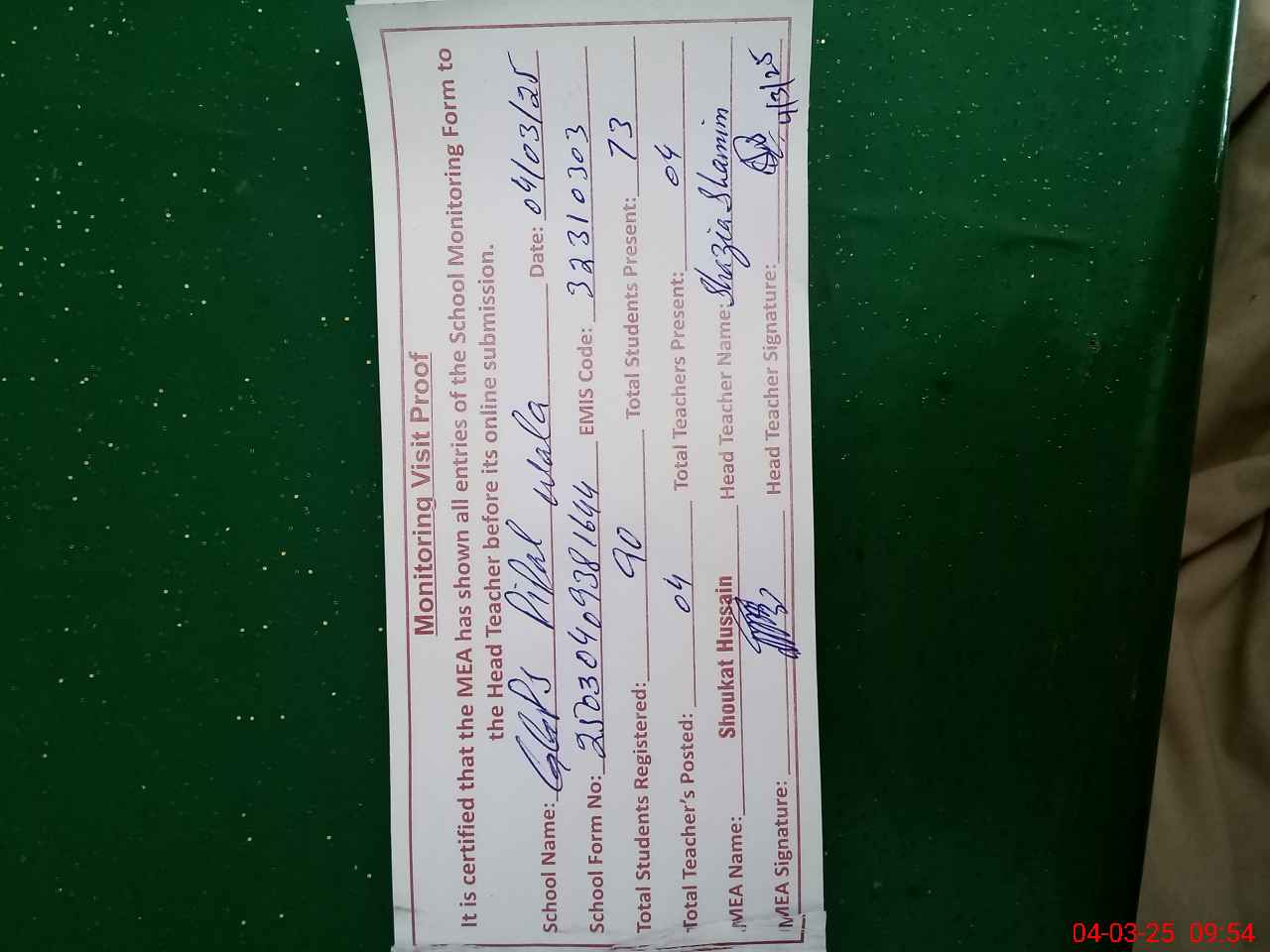 | EMIS Code: 32310303 | Name of School: GGPS PIPAL WALA | |||