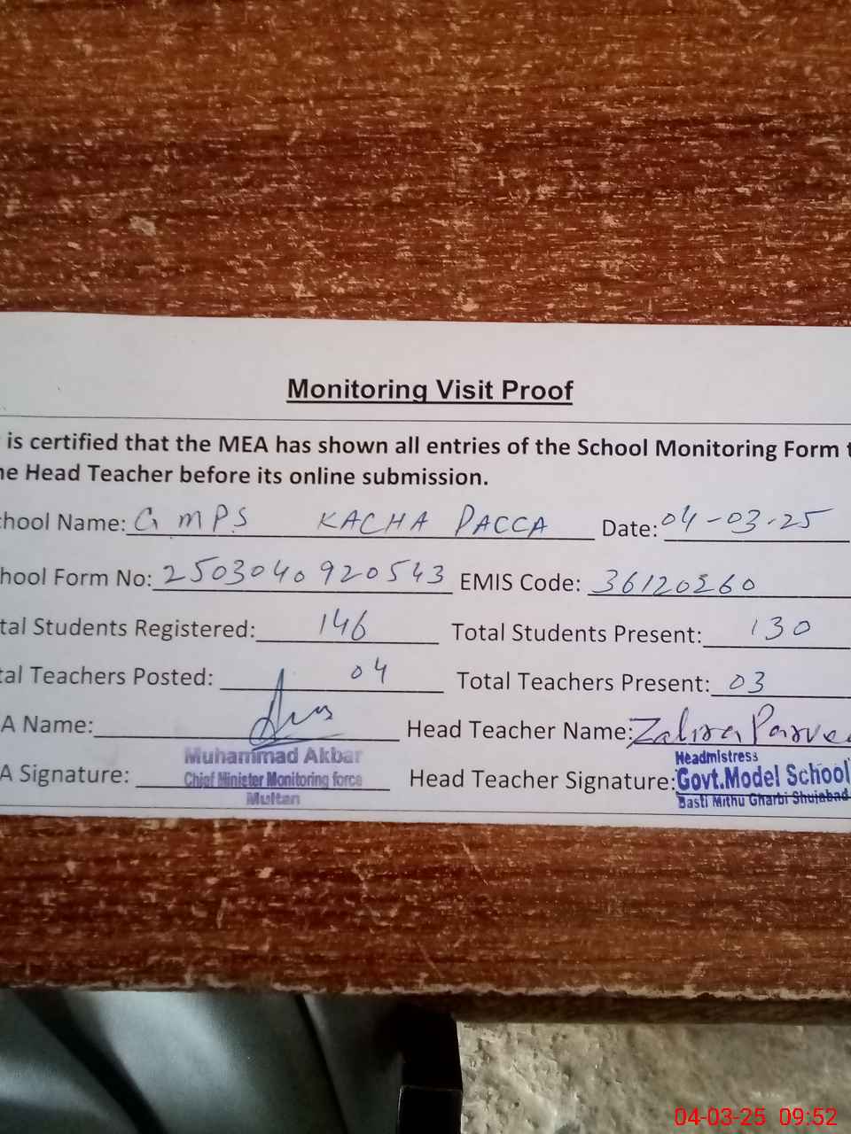 | EMIS Code: 36120260 | Name of School: GMPS KACHA PACCA (BASTI MITHU GHARBI) | |||