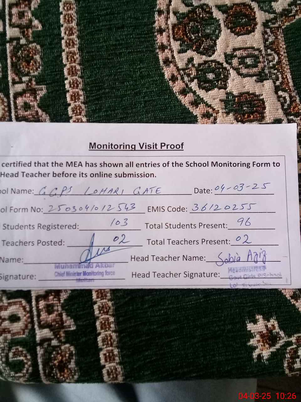 | EMIS Code: 36120255 | Name of School: GGPS LOHARI GATE BASTI MITHU SHUJABAD | |||