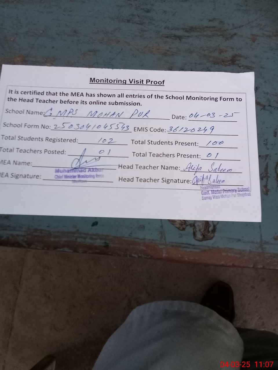 | EMIS Code: 36120249 | Name of School: GMPS MOHAN PUR | |||