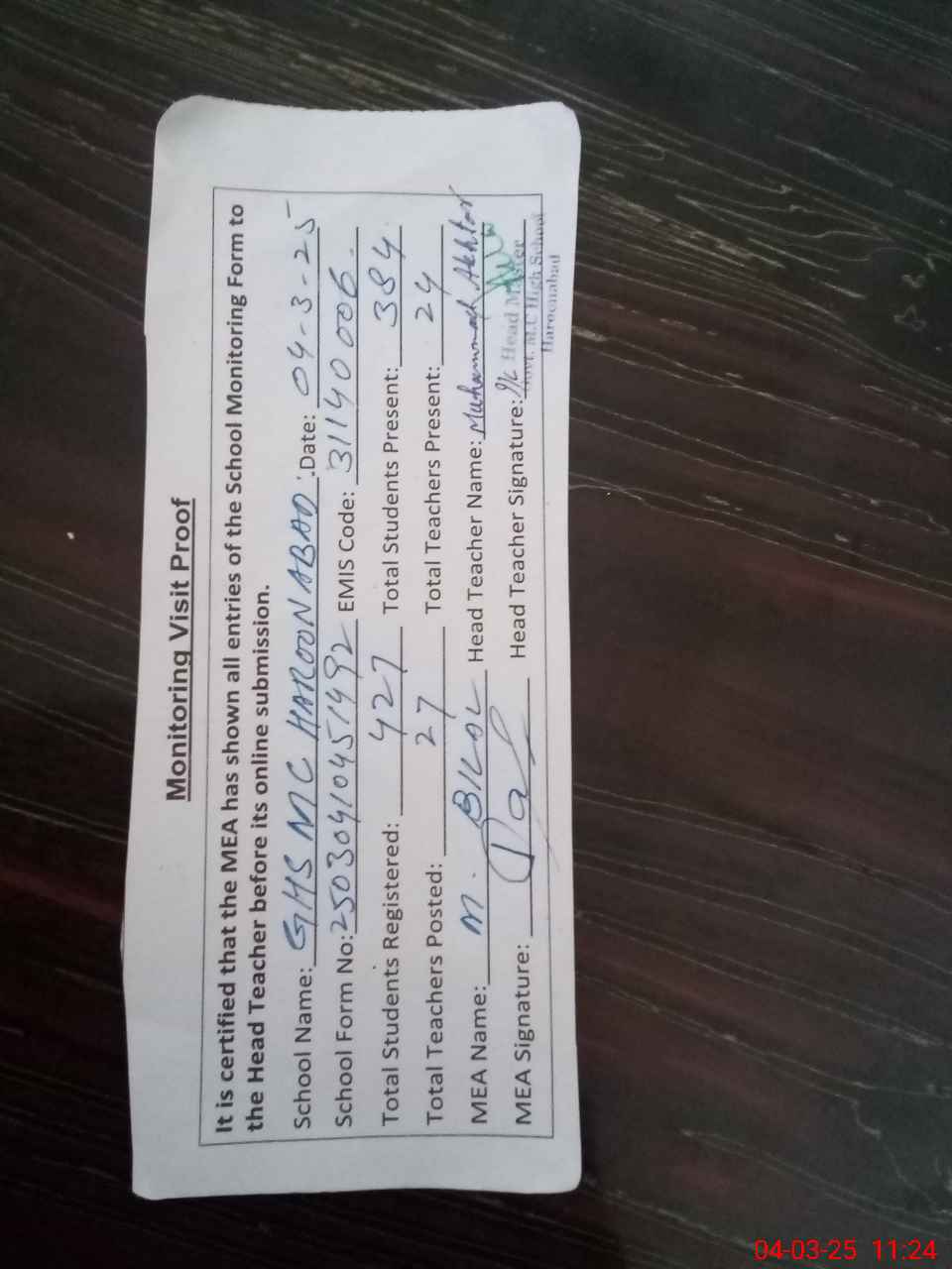 | EMIS Code: 31140006 | Name of School: GHS MC HAROON ABAD | |||