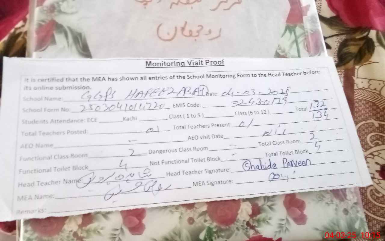 | EMIS Code: 32430179 | Name of School: GGPS HAFEEZ ABAD | |||