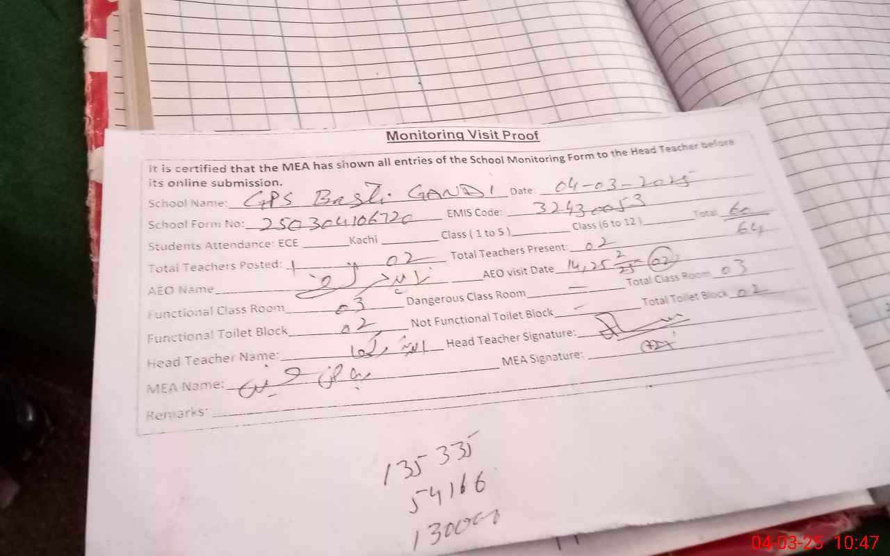 | EMIS Code: 32430053 | Name of School: GPS BASTI GANDI | |||