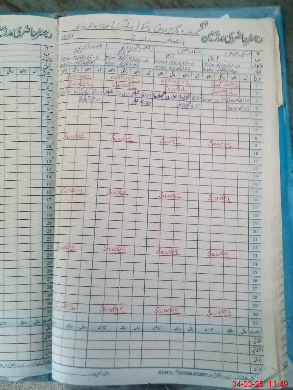 | Name: SA**** PA**** Designation: (School Headmaster's/Headmistress's) PST Phone/Cell Number: 03**** |
