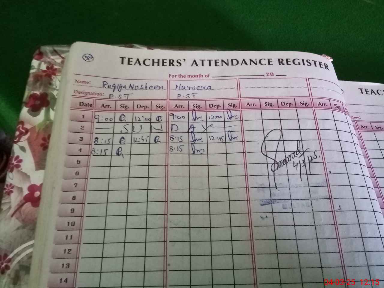 | Name: RU**** NO**** Designation: (School Headmaster's/Headmistress's) PST/PTC/JV Phone/Cell Number: 03**** |