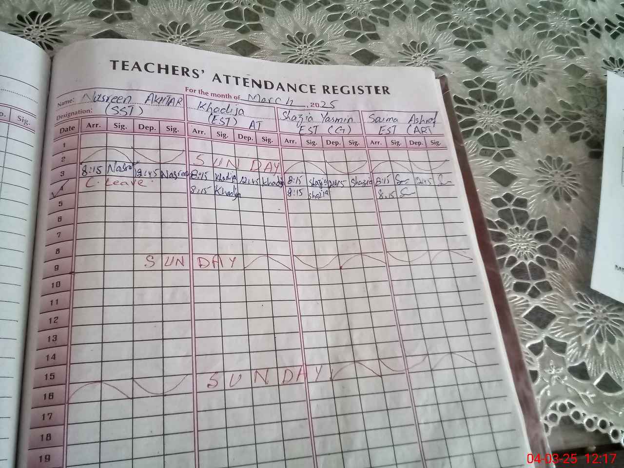| Remarks (Use Separate Page if Required): Note NASREEN AKHTAR SST HEAD TEACHER FOUND ABSENT WITH OUT LEAVE DURING SCHOOL VISIT | |||||