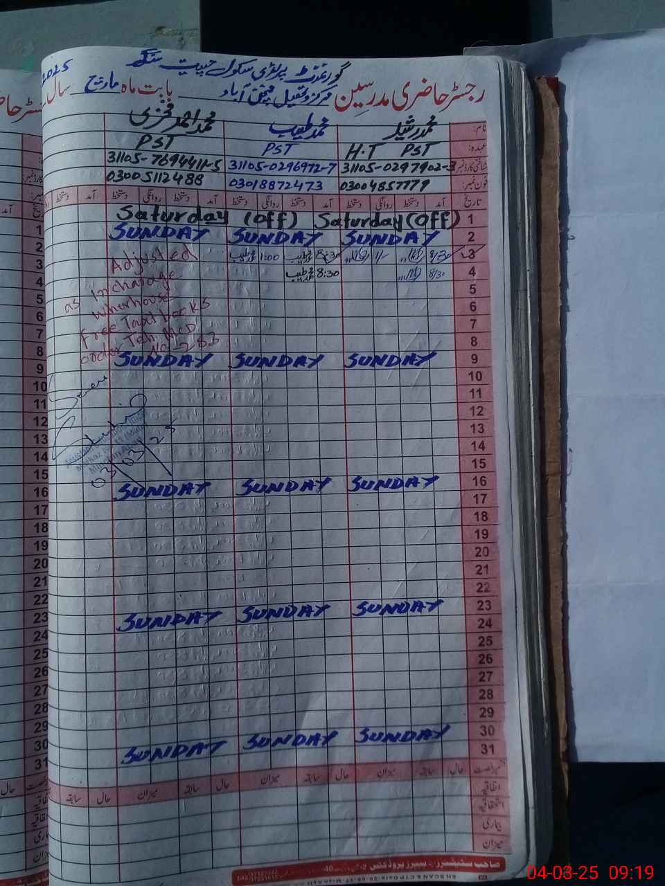 | Name: Mu**** Ra**** Designation: (School Headmaster's/Headmistress's) P S T Phone/Cell Number: 03**** |