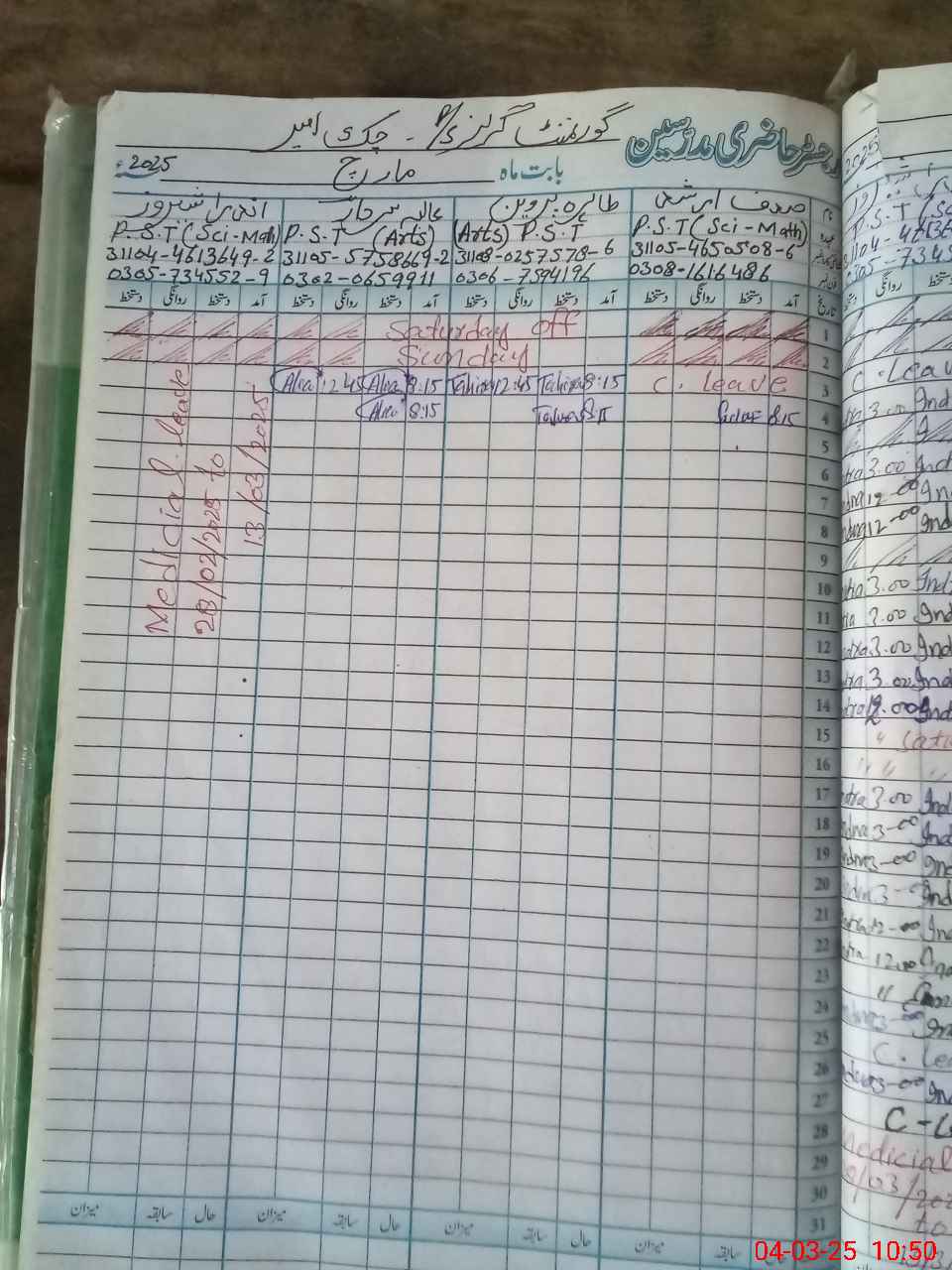 | Name: SA**** AR**** Designation: (School Headmaster's/Headmistress's) PST Phone/Cell Number: 03**** |