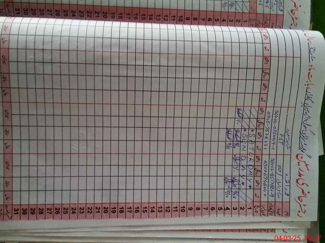 | CNIC | Full Name | Designation | R/C | Absence During Last Calender Month |