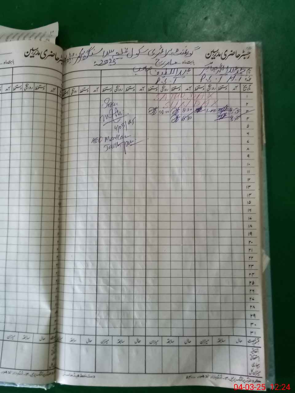 | CNIC | Full Name | Designation | R/C | Absence During Last Calender Month |