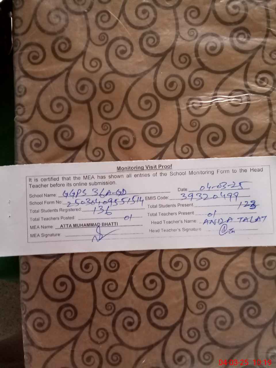 | EMIS Code: 39320499 | Name of School: GGPS 36-A/G.D | |||