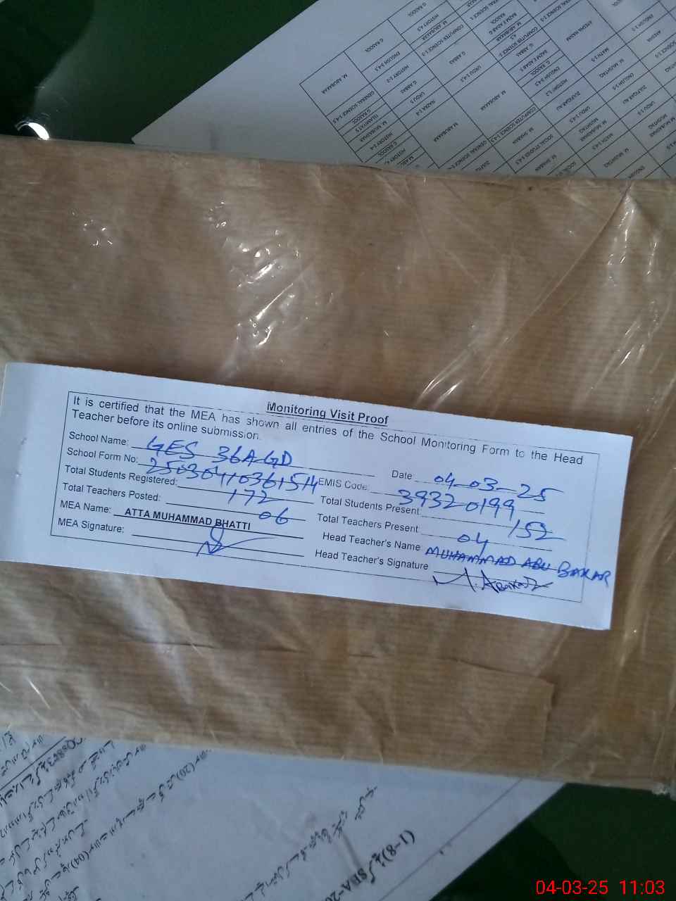 | EMIS Code: 39320199 | Name of School: GES CHAK 36-A/G.D | |||