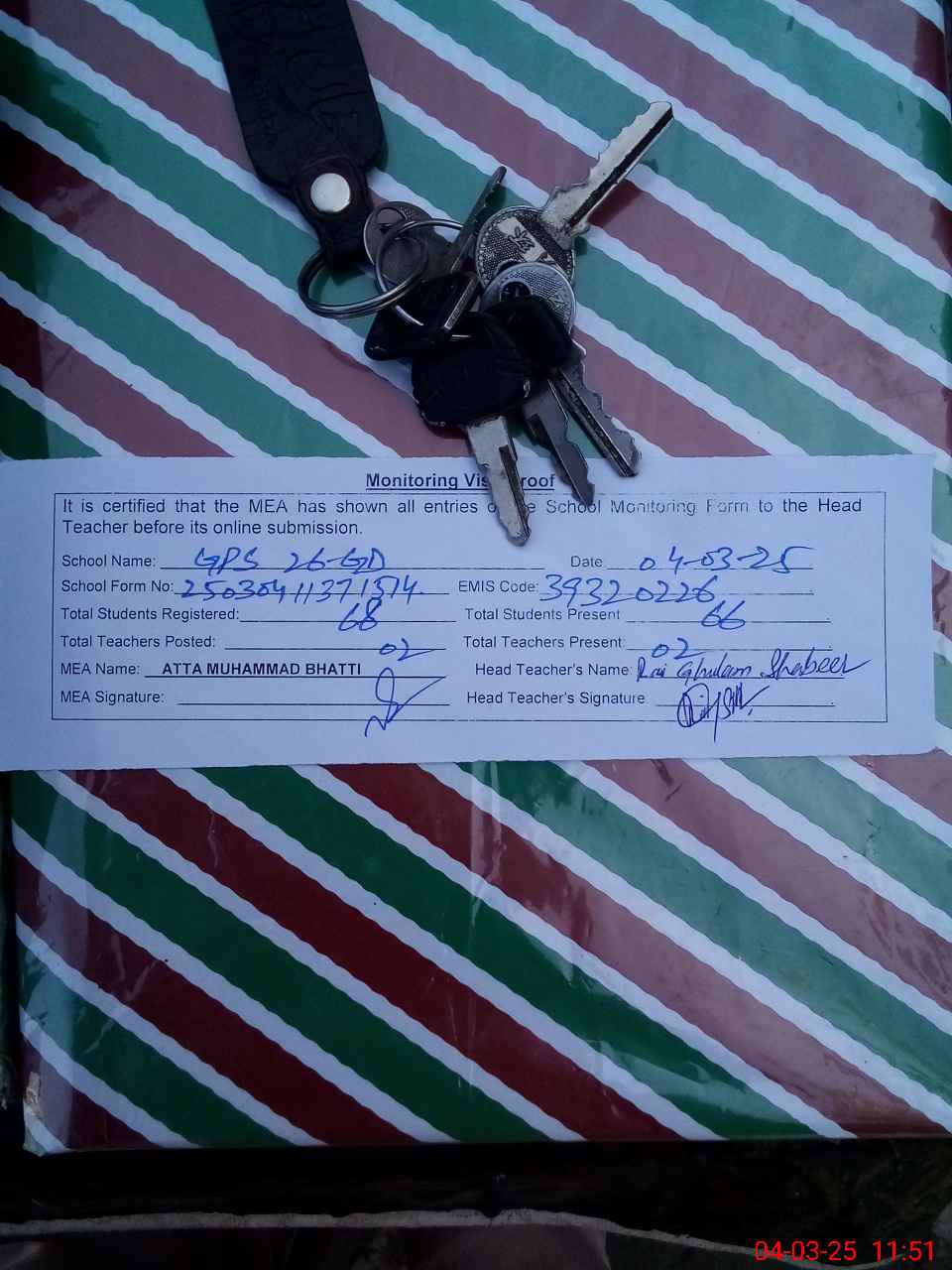 | Attendance Register | Head Teacher | MEA with School | Visit Proof |