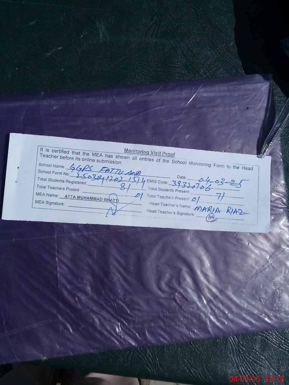 | EMIS Code: 39320706 | Name of School: GGPS CHAK FATTO ANA | |||