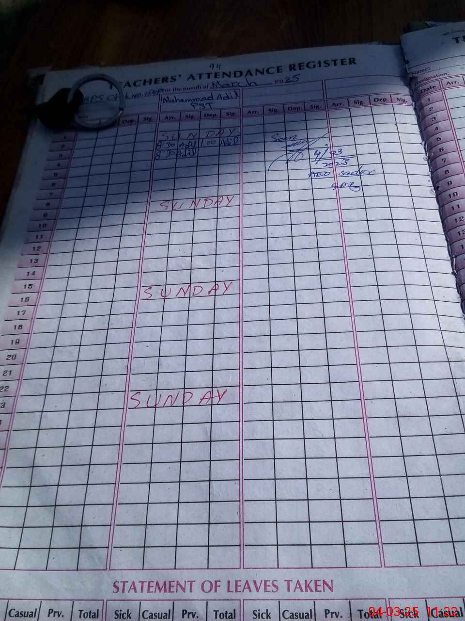 | Leave | Duty | Absent | Maternity | Medical | Ex- Pak |