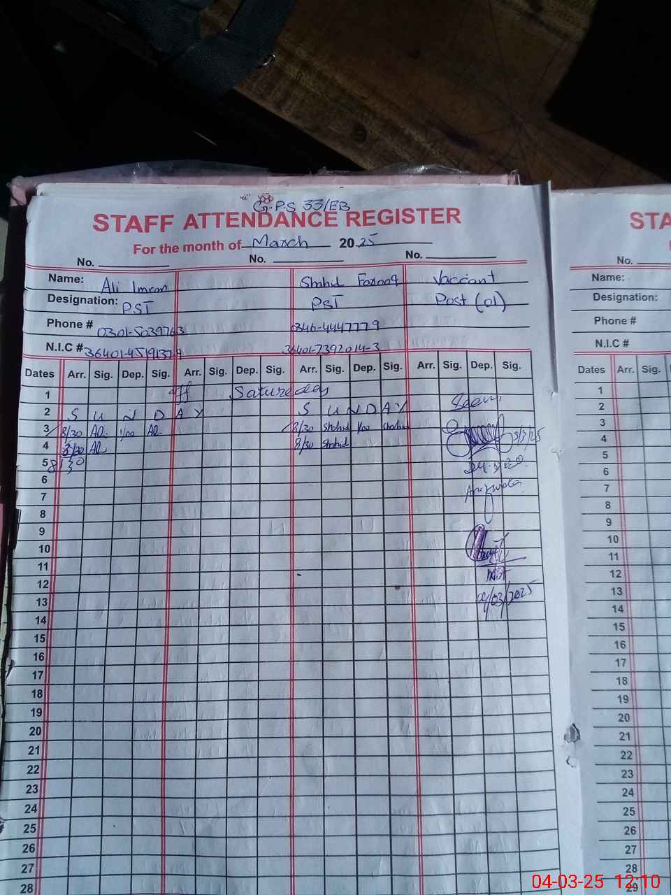 | Name: AL**** IM**** Designation: (School Headmaster's/Headmistress's) PST Phone/Cell Number: 03**** |