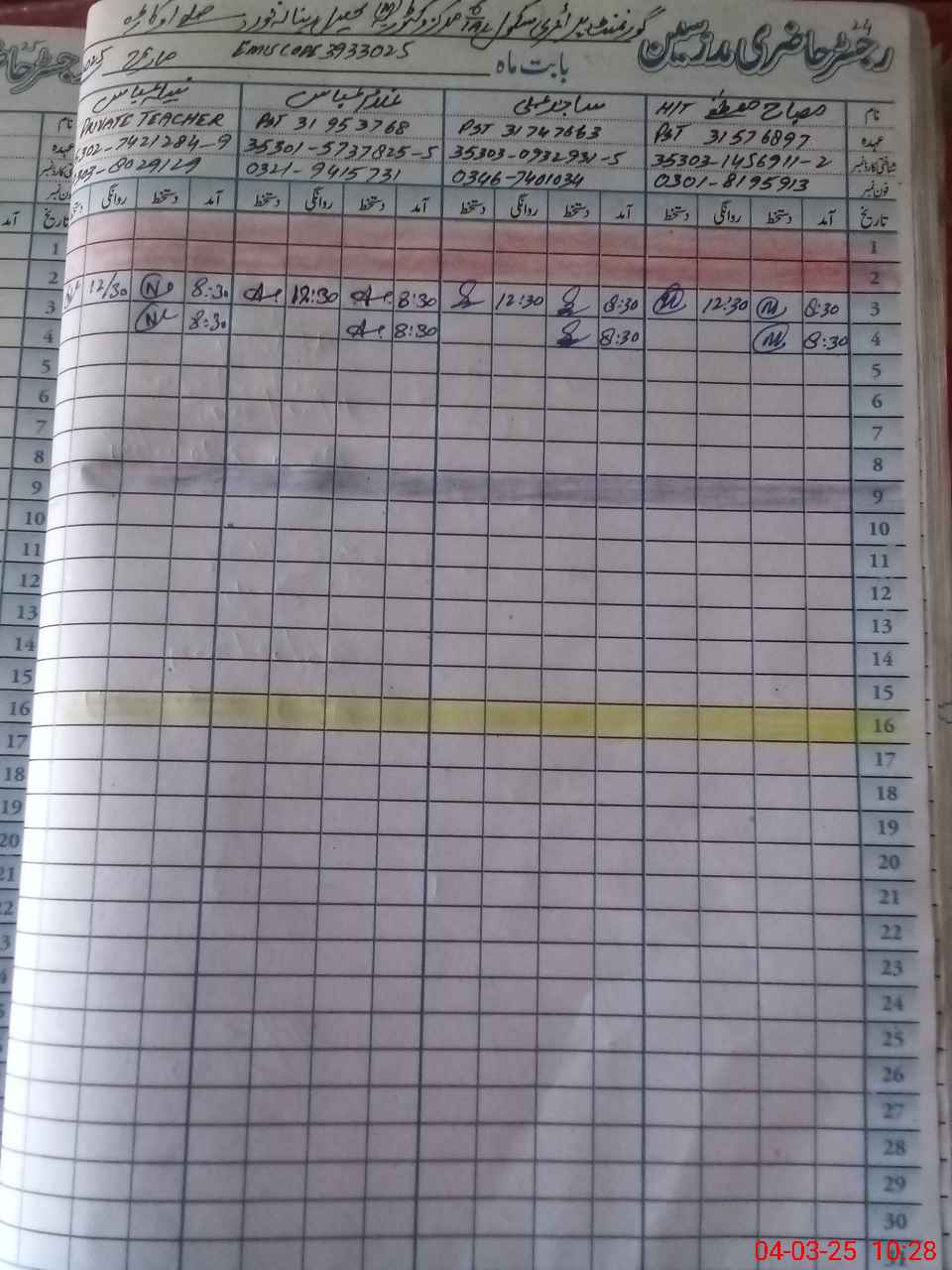 | Name: Mi**** Mu**** Designation: (School Headmaster's/Headmistress's) PST Phone/Cell Number: 03**** |