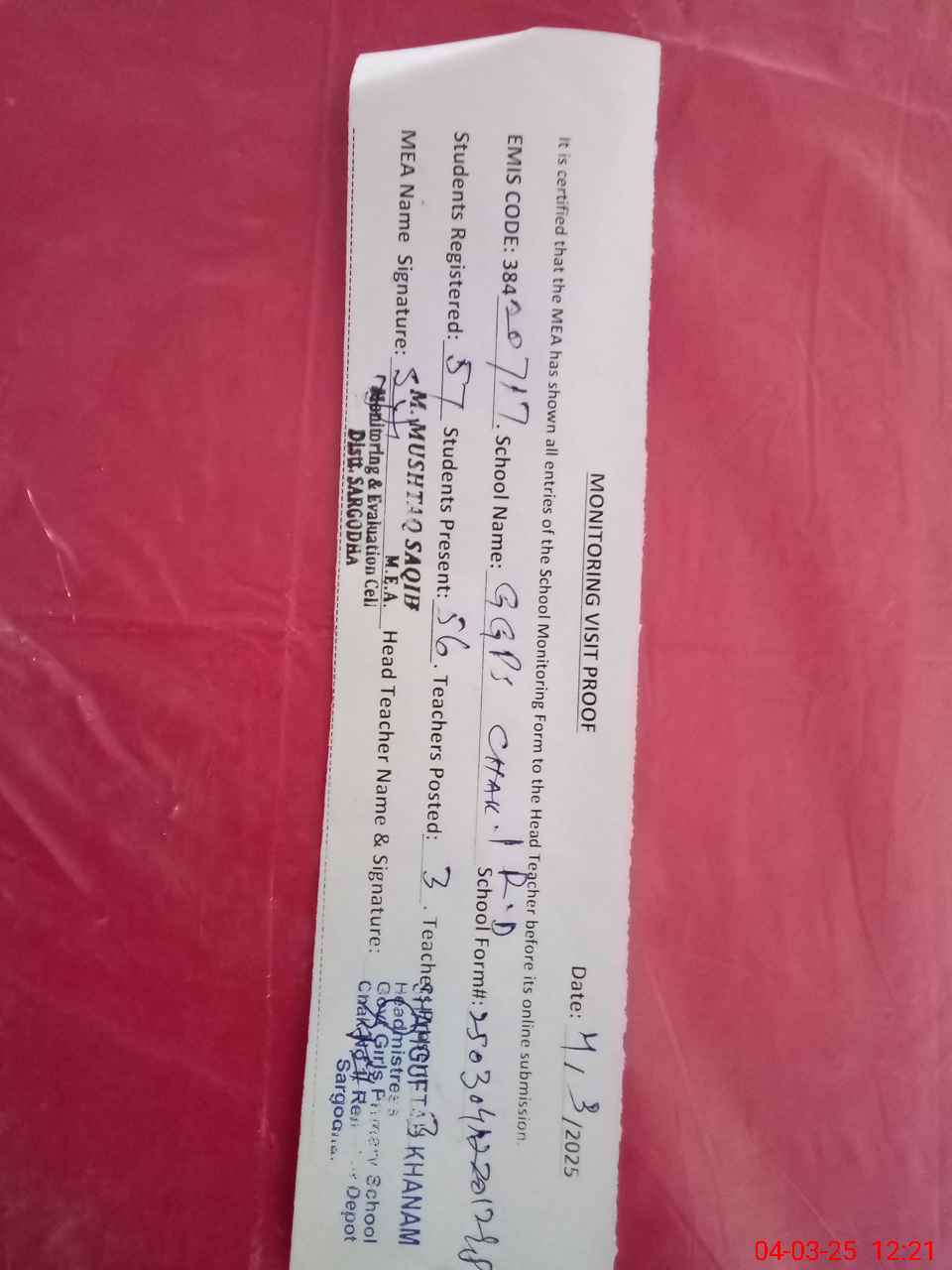 | EMIS Code: 38420717 | Name of School: GGPS CHAK NO.1 REMOUNT DEPOT | |||