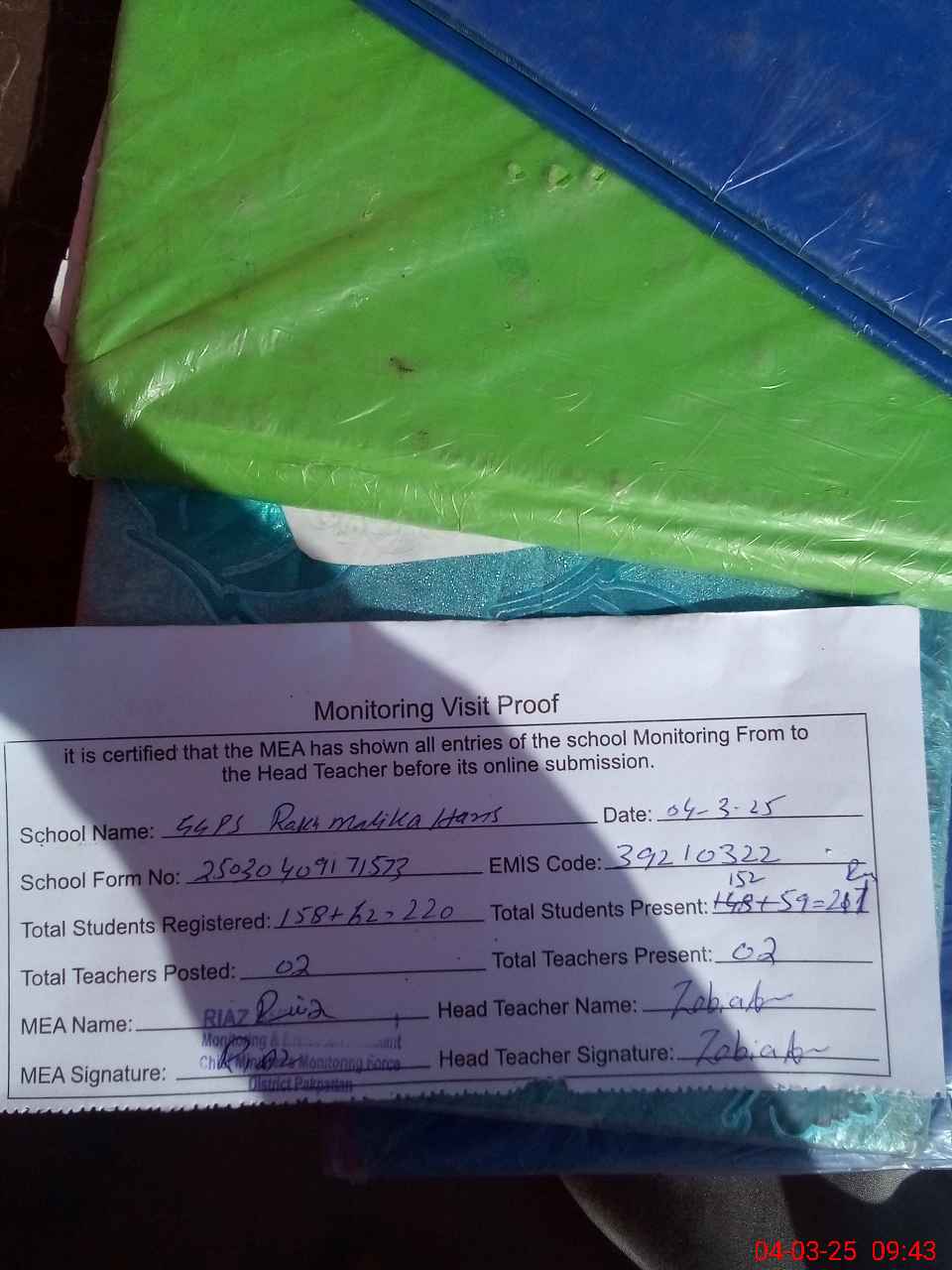 | EMIS Code: 39210322 | Name of School: GGPS RAKH MALIKA HANS | |||