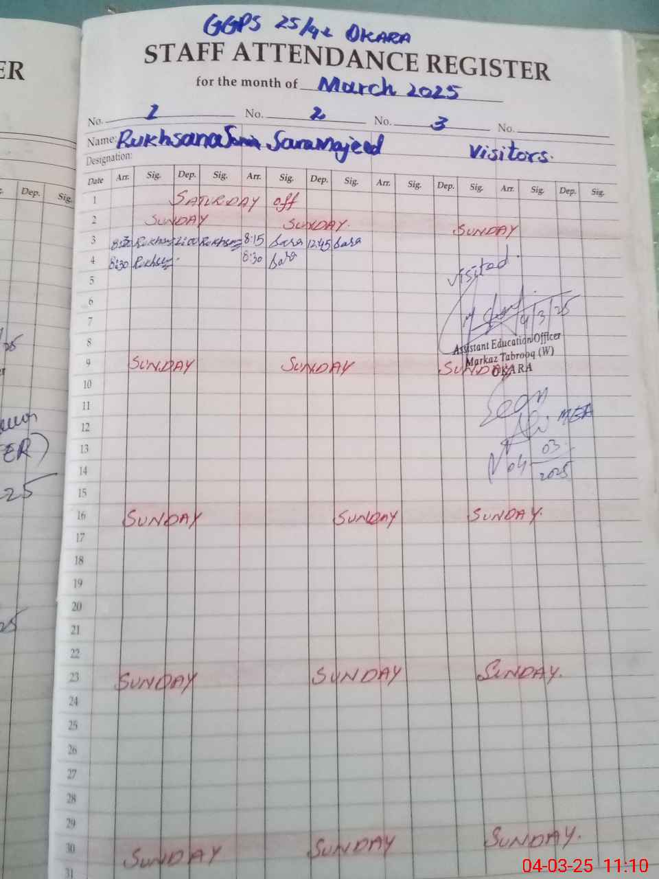 | District: OKARA | Tehsil: OKARA | Markaz: TABROOQ - FEMALE | Level: Primary | |