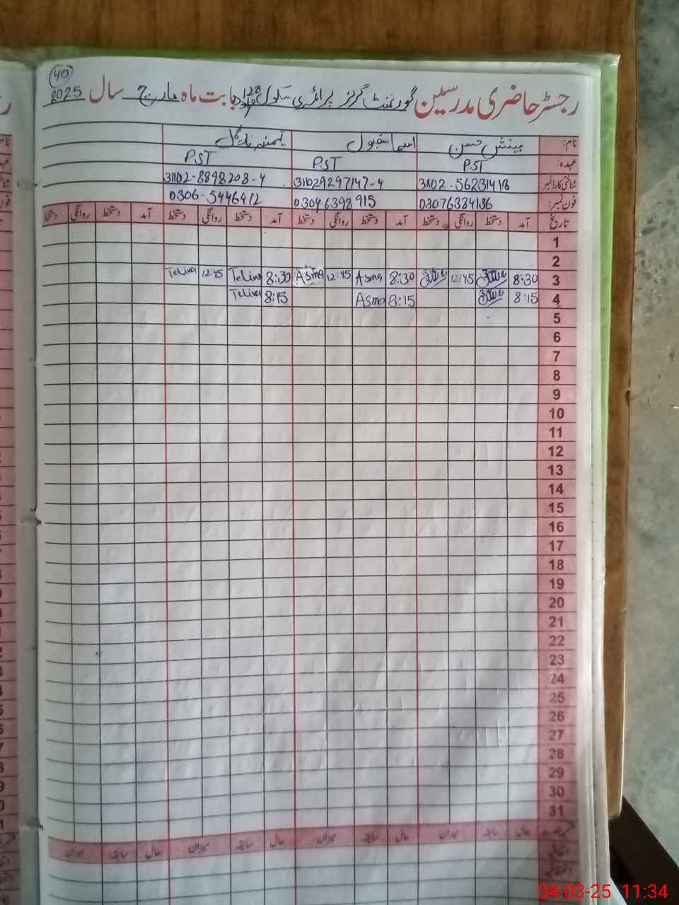 | Name: BE**** HA**** Designation: (School Headmaster's/Headmistress's) PST Phone/Cell Number: 03**** |