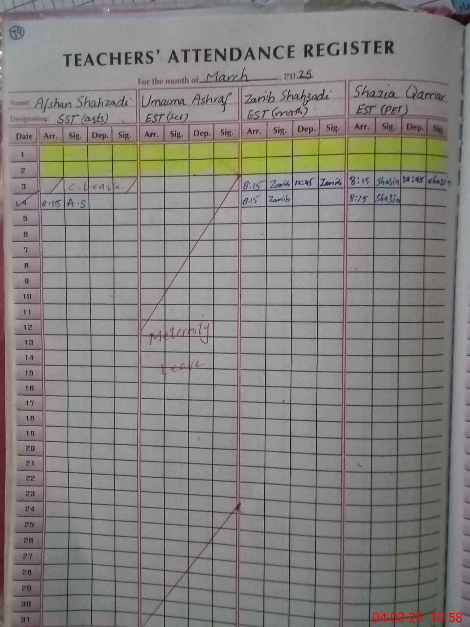 | Leave | Duty | Absent | Maternity | Medical | Ex- Pak |