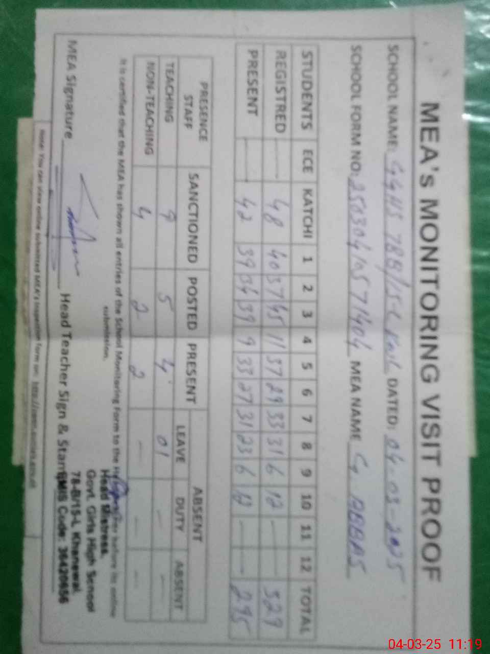 | EMIS Code: 36420656 | Name of School: GGHS 78-B/15-L, KACHA KHUH | |||